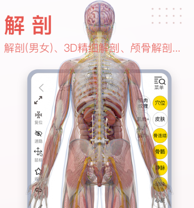3D人体解剖模型软件,其中有数学教材有开创性的掌上教材,让小伙伴们在学习时更轻松更容易。其之前人们认为解剖学习是非常枯燥的,而使用这款软件之后,却发现拥有着足够的趣味性,因为其中包含的资料非常齐全,有多种不同的系统满足你的需求。