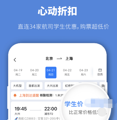 在国外留学的学生非常多,为了能够让学生节省更多的旅程往返资金,这款软件推出各种活动以及折扣,这里购买并预订机票要比正常的价格便宜一些。整合全网学生折扣机票信息,帮助每位学生降低购买机票的费用,让小伙伴们顺利飞行,实现飞行自由。现在已经签约30多家国内航空公司,品质保障价格超低。