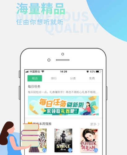 如果大家喜欢通过手机来听书的话,那么它就是不容错过的,在里面用户能解锁各类不同的书籍作品,同时声音的选择上也多种多样,让大家能轻松获得良好的体验感,更是能通过榜单来定位自己喜欢的作品。