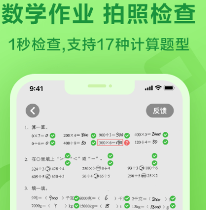 拿起手机就能写作业的平台,作业学习的好帮手,多用练习乐趣无穷,数学作业拍照即可检查,支持17种计算题型,只需一秒即可出现检查结果,还能练习听力口语。
