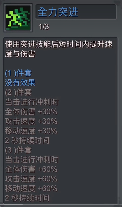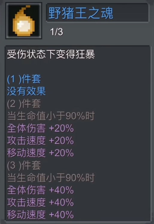 另外有时部分装备的羁绊也会出现“全体伤害”的字眼,不过它们相比装备的附加词条,其数值会更高一些,往往两件套就能达到20%~30%的水准,而三件套则更是能直接到40%~60%,所以要享用这个全体伤害的话尽量选择通过装备羁绊去凑。