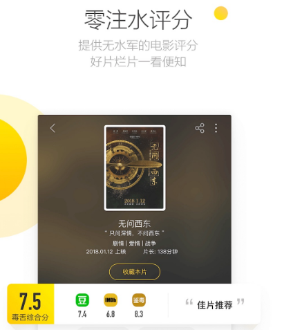 在看影视的时候,该软件是华人影迷们必备的一个软件,拥有很多零注水评分的电影以及口碑非常不错的电视剧。不知道看什么的情况下,这里还会每日推荐非常好看的作品。