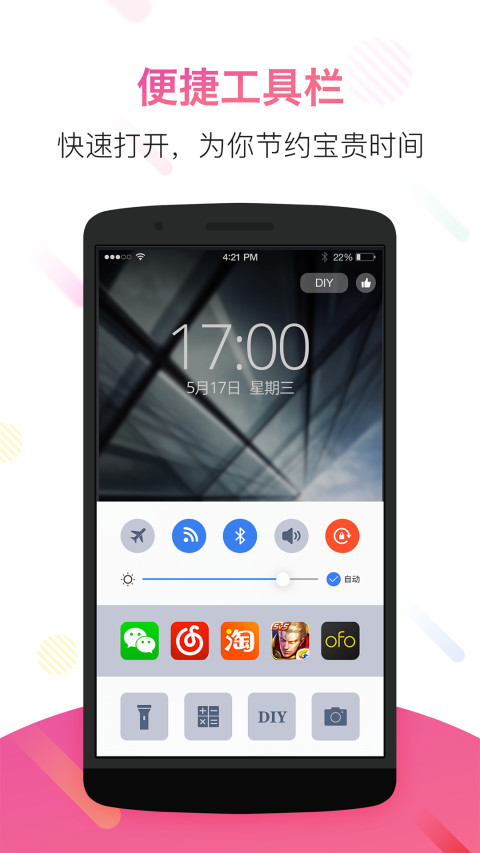 这款新流行起来的锁屏软件,主要因为它的独特的锁屏主题风格以及新颖的壁纸而受到大众年轻人的喜爱,此外,它还有天气预报,时间,日期,星座运势,新闻资讯,收藏夹,记事本插画,DIY编辑器,分享社区等附加强大附加增值服务。