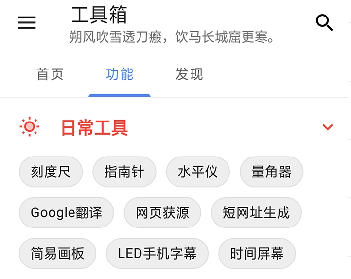 通过下图大家也能够发现其工具的种类还是比较全面的,像刻度尺,指南针,以及网页翻译等功能都能够提供给大家,涉及了各个不同的领域,从工作,工程很多方面提高效率,让大家的生活变得更加的简单有趣。