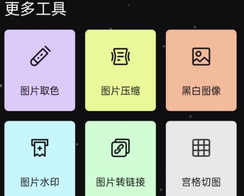 在这里用户可通过快捷功能来针对自己手机中的图片进行取色,还有的压缩以及黑白图像等功能,此外,像图片的水印以及转换等,它也能够为大家开放,海量的编辑功能,点击就可以了解,满足用户对于图片编辑方面的需要。