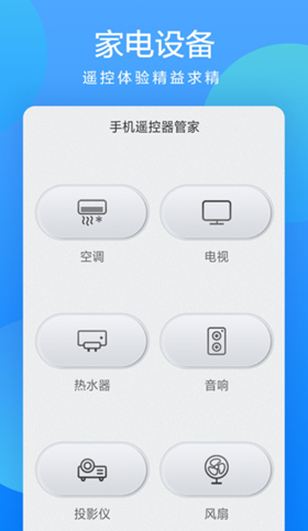 说是空调遥控器其实对目前家用的一些常见电器都提供了支持,比如说热水器、扫地机器人、空气进化器等,开启家电设备之后可以直接在软件中进行扫描,十分方便。