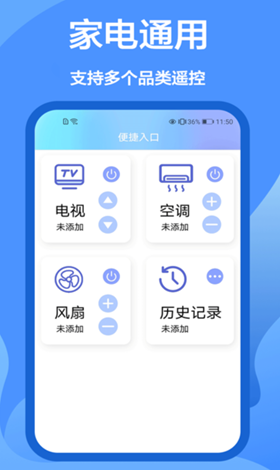对电视、空调、投影以及音响等家用电器提供了比较好的支持,软件的使用方法特别简单,直接扫描局域网下支持的设备进行添加,随后在触屏上就能够完成调整操作。