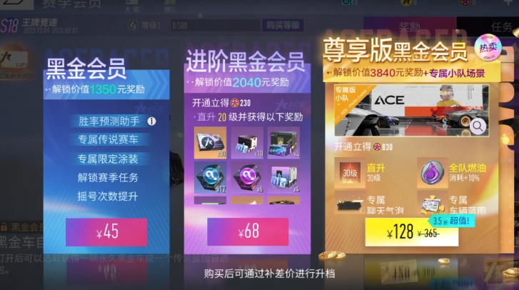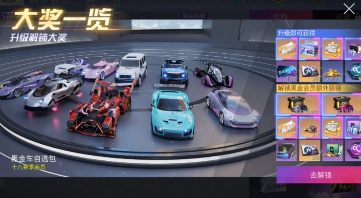 同时该死阿基的黑金会员在解锁之后能够直接领取一个黑金车和黑金涂装的自选包,另外s18的黑金会员升到100级之后还能领取450纪念币,加上开通会员时立即就能获取的那些纪念币,整体奖励可以说非常可观。