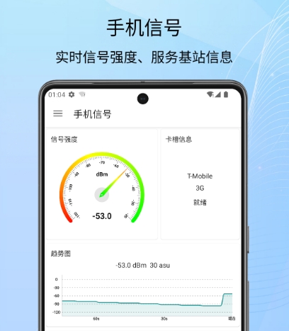 它能为大家去实时的查看信号强度,包括手机的信号以及基站位置信息等,这些都能快速的进行了解,同时还有蓝牙、传感器和温度计等功能分享给大家,让用户能实时获取到想要的数据。