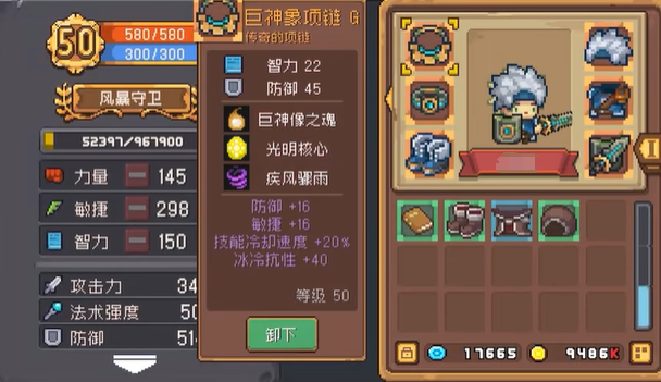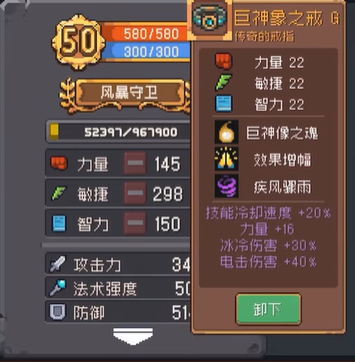 巨神象项链,巨神象秘钥,巨神象之戒,装备后,可以激活巨神象之魂以及光明核心羁绊,而且初始的智力和防御加成非常适合风暴守卫这类近战输出职业,最关键的是,这款个装备可以给风暴守卫的技能带来20%的技能冷却时间!
