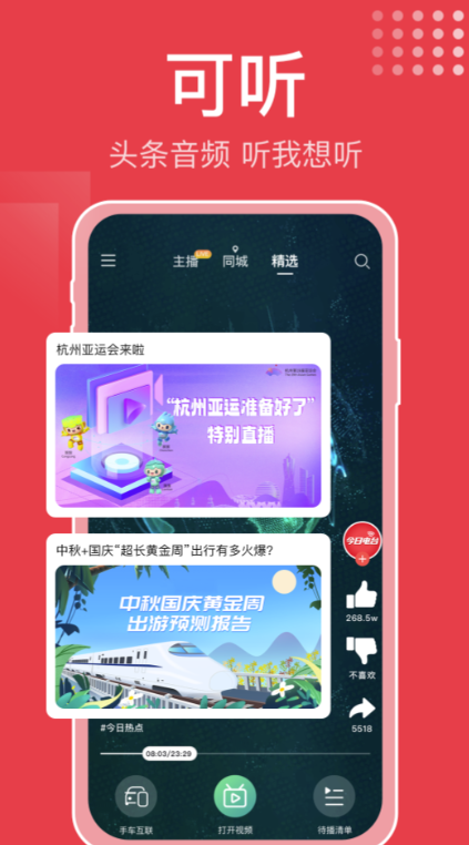 通过这款软件就可以帮助你接受到各个电台的信号,从而让你收听自己喜欢的节目,覆盖的内容相当的丰富,不间断的直播二十四小时应有尽有,清晰的音质陪你一整天。
