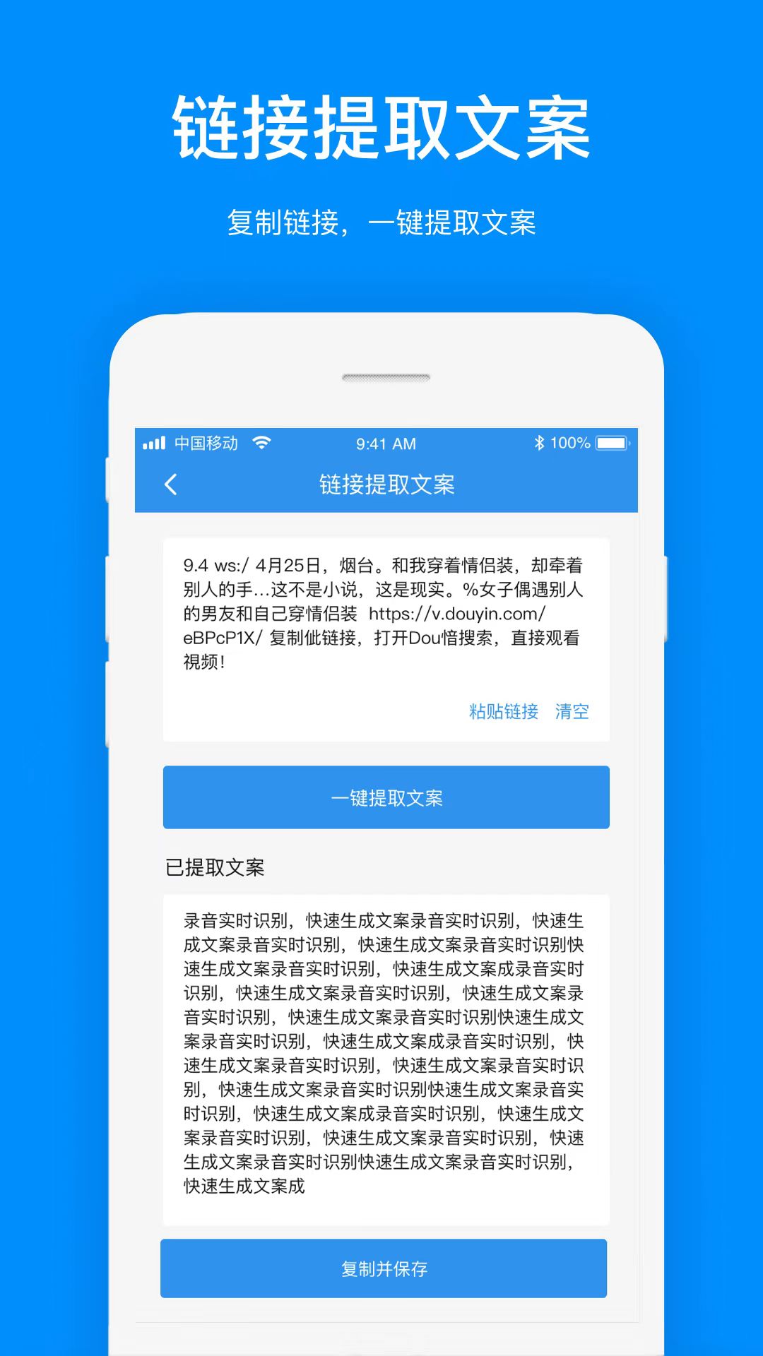 这是一款支持本地视频,不管是一个还是多个都可以进行提取,一键就可以提取音频,将提取出文字。还可以复制视频的连接,也可以进行提取。