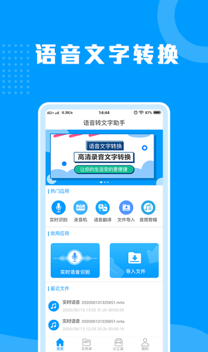 单次转换音频导入没有内存的要求限制,哪怕就是两三个小时的语音,只要你手机有电就能一直转换,转换中可以随时打断,要是就放在一边的话也不会自己中断,平时有想记录下的内容也可以打开录音功能,既能当录音笔用又能为你去转换为文字,每次用起来都很省心,像是很常见的MP3、MP4格式转换起来没任何压力。