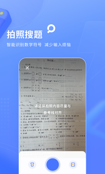 想要找参考论文或是完成学业考试之前的复习都可以用它,使用方法极其简单,只要有一部手机能拍摄就可以,要是懒得输入还可以语音讲出自己的疑点,帮你解开困惑,就算是上网课也能进行同步搜题,甚至还能帮助你完成实习报告,除了查题之外还可以查论文、资料、单词等等,有了它之后让你的大学生活更加高效。