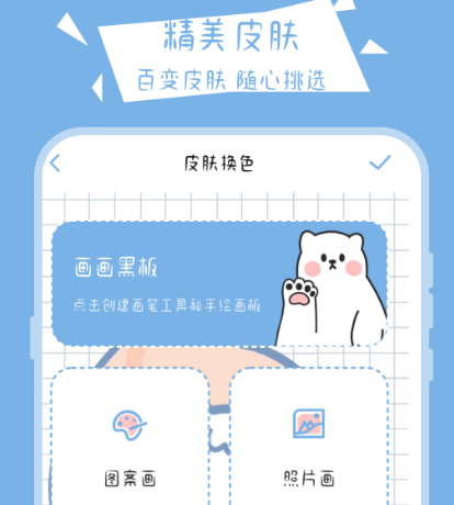 作为一个能够绘画的软件来说,它充当的一个画画板这样的角色即可,涂鸦也可进行填色,随时随地的完成自己的创作,尤其是对于从事绘画的人群,不管是有设计灵感还是有任何的灵感,都能够随时随地记录。整个操作方法非常的简单,还拥有着精美的皮肤以及百变的皮肤可以选择。