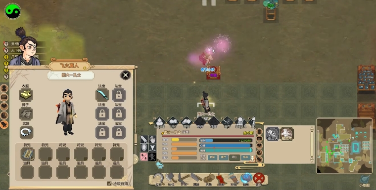 在打小怪的时候大家是可以利用上面各种道具的,这里推荐大家使用的就是炮仗,这个炮仗大家可以在商人那里购买,只需要200灵石就可以买到一个,大家先买好炮仗装备好,然后去接近这个小妖一点的位置,需要大家注意的是在这里一定要靠近之后再炸小妖。