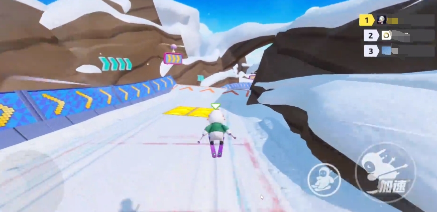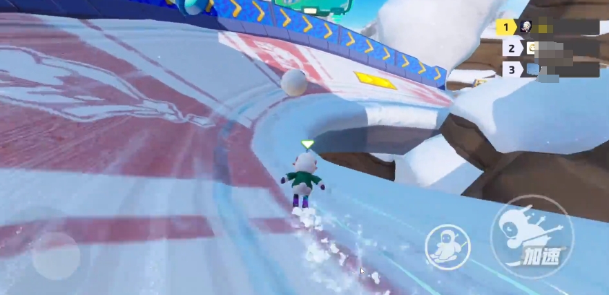 值得一提的是除了缤纷雪球以外,游戏内还有其他的障碍物,它们的体型相较于雪球会更大一些,所以也要一并躲避一下,除了躲避障碍外还需要学会借助地形加速,具体的方法就是往左右两边的加速板靠近。