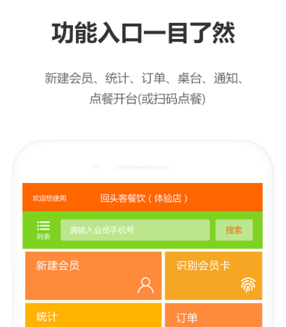 该软件及扫码点餐外卖预订为一体,直接首页就可以看到它的功能,可新建会员统计订单以及桌台通知等等,在客人进入餐厅以后就可利用该软件来完成点餐,也能一目了然的了解菜品以及具体的分类等,有利于餐厅的经营情况。
