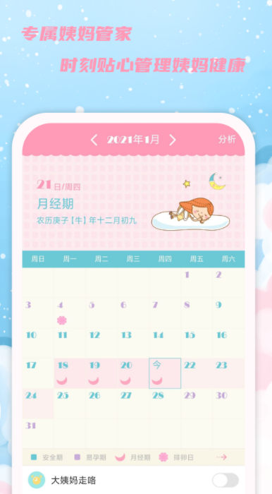 女生可以用它来记录一些特殊的时期,包括自己生活当中的一些开销流水均可一键保留下来,帮助你更好地管理生活,让很多繁琐的事一件一件捋清楚,在各方面上照顾你的生活。