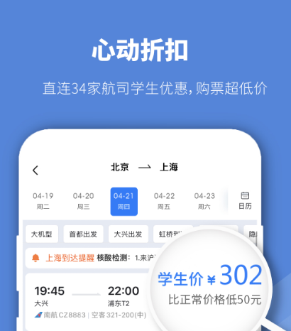 对于学生来说,自然希望在乘坐飞机的时候能够便宜一些的软件,就是专门为学生而设置的订机票软件,汇集了全网的学生机票,不仅拥有着心动的折扣,而且还能查询历史价格,让用户更容易买到便宜的机票,在学生乘坐飞机的时候也能带来诸多的便利。