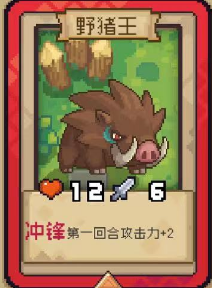 1,野猪王:【冲锋】第一回合,攻击力 2;