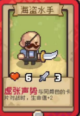 3,海盗水手:【虚张声势】与同颜色的卡片对战时,生命值 2;