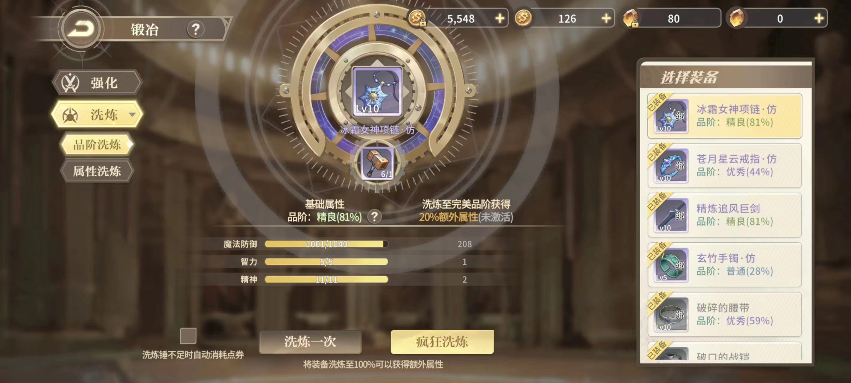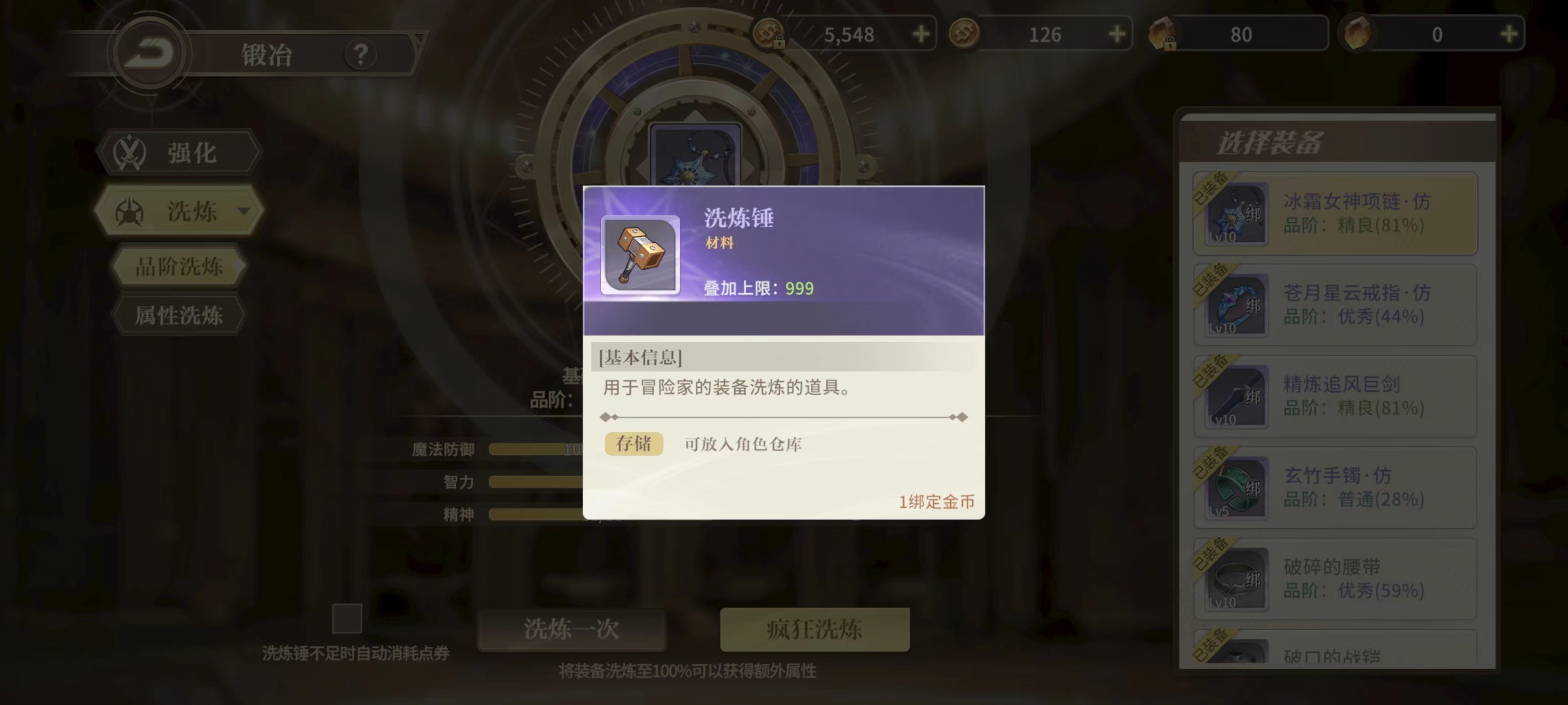 此外,对于目前装备不满意的话也可以通过更换装备和洗炼装备来改善现状,游戏前期获取高品质装备的方式不少,可以通过七日狂欢和签到活动免费获取梦幻神器与史诗防具,这些足够你轻松渡过前中期的副本,至于洗炼所需的洗炼锤道具也可以在这些活动各种一并入手,这样你后续给装备洗属性的时候就不会缺材料了。