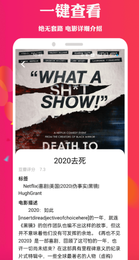 对电影作品进行了比较详细的描述和剧情简介,更有一些权威的影评供大家获取,能够帮助我们快速了解是否适合自己观看。软件除了可以在线播放之外也能够选择不同清晰度和画质来进行下载。
