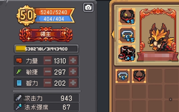 属性推荐主加力量,因为领主毕竟是一个近战物理职业,所以对于力量所提供的攻击力和生命值他都有很迫切的需求,攻击力可以全盘提升他的输出,而生命值则提供了更高的容错,确保它不会在小怪的围攻或boss的技能倾泻中瞬间暴毙,至于敏捷则主要在前期加一些,这个属性提供了暴击,闪避等属性,对于角色的灵活性和爆发能力都有加持,前期点一些能提升清图能力,以此加快发育。