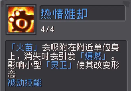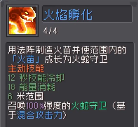 在技能方面的话,就比较推荐玩家们优先升级【热情难却】,虽然是一个被动技能,但是可以大幅度的提升,自身的火焰伤害效果,在对敌人释放攻击的时候,是有概率对敌人附加火焰效果的,这个火焰效果会停留一段时间,然后爆炸,还会改编【灵卫】的形态!这个被动技能需要搭配通灵的技能来进行使用,当被动技能可以增加火焰的伤害时,这个时候就可以学习【火焰孵化】了,开启一个阵法,自动生成火苗,然后会把火苗变成火蛇,这些火蛇会主动攻击周围的敌人;几乎伤害是不缺的;