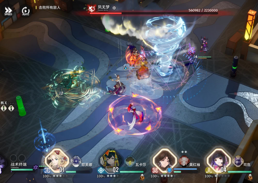 战斗是即时的玩法,可以通过点击屏幕,控制你的角色移动与技能的使用,角色可以组成一个四人小队,每个角色都有自己的技能条,当技能条满时,可以释放技能。而我们作为俯视角的指挥官,可以随时切换队长,来发挥不同角色的优势,也可以使用异核能力,释放强大的大招。游戏中有多种战斗玩法,包括回廊漫巡、天隙勘测、联合训练场等相信一定可以满足你的不同玩法个性。