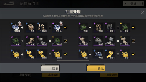 机甲品质解放会消耗机甲部件,所以要合理安排机甲部件的使用,避免浪费资源,尽量优先解放主力机甲,闲置机甲可以用于模组生产。