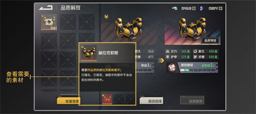 在车间中进行品质解放,可以在车间的品质解放界面,选择想要解放的机甲部件,然后消耗相应的机甲部件,进行品质解放,提升机甲的品质等级。