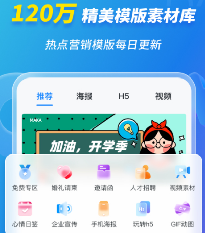 各种精美模板满足所有需求,几百万精美素材每日都会时时更新,多行业全场景任意应用,包括人才招聘、教育培训、邀请函、生日贺卡、促销活动、招商加盟等, H5海报,各种设计风格全面覆盖。选择模板之后可直接添加音乐素材、图片、文字等操作简单,即便小白也能轻松上手。