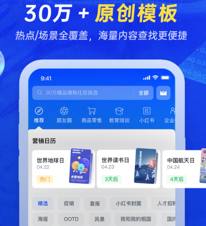 微商作图海报宣传神器全网累计下载用户已经超过3亿人,只需选择合适的模板,然后一键换图即可,轻松做图批出海报,让营销更简单更有利。设计师天天做原创,每天都会实时更新素材使用,使用该平台选择海报模板版权无忧。
