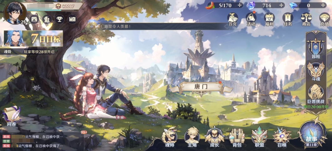 如果想要加速成长的话,大家也可以在上面利用主线上面各种任务来提升自己的经验,后期大家升级就可以慢慢解锁各种新玩法,在副本当中大家可以看到各种魂兽,将这些幻兽打败大家就有机会可以获取魂环哦,如果是喜欢野外冒险的玩家也有很多高级地图可以探索哦。