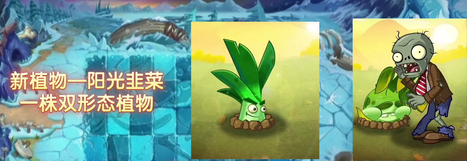 第二个植物就是下图的阳光韭菜,它有三种不同的阶段,一种是不露头的幼苗阶段,这一阶段没有任何作用,第二阶段则会从土里冒出,此时会不断生产阳光,第三阶段则会在僵尸靠近时施放口臭攻击,从而将它们去干到上面一排或者下面一排。