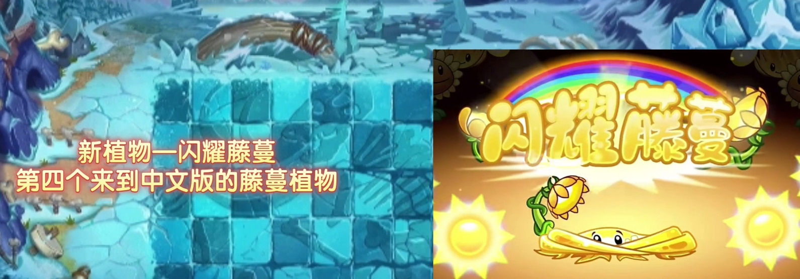 第三个植物则是则是描图的这个闪耀藤蔓,它也是pvz2中文版中为数不多的藤蔓植物,其功能非常多,首先可以直接种在生产类植物身上让它们生产阳光的效率提升,其次它自身也可以额外产生阳光,然后它还有攻击的能力,在僵尸靠近后会攻击并眩晕它们。