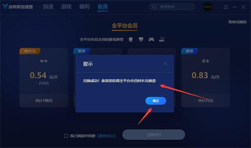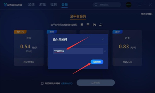 4.输入兑换码:YBB7878,点击立即兑换,即可免费获得游帮帮3天兑换券;