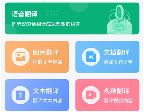 在这里大家能通过语音翻译等多种不同的功能来为大家进行学习,同时支持图片和文档等多种形式的翻译功能,更是提供了文本和视频的翻译给到大家,让用户能去根据自身的需要来进行选择,整体使用起来的便利程度非常高。