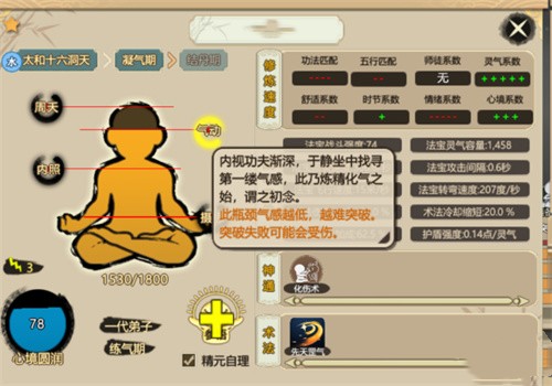 修炼功法是提升修为的重要手段,玩家需通过研读秘籍来增进自身的气感层次。无论是门派传统功法、师父亲授的技艺、历练中发现的秘法,还是市面上购得的功法,均可作为学习对象。每掌握一种新的功法,玩家的气感就能相应提升一级。然而,每种功法仅能修炼一次,且在修炼过程中将耗费时间与灵气,因此玩家必须确保自己有充裕的时间和充足的灵气来完成学习。