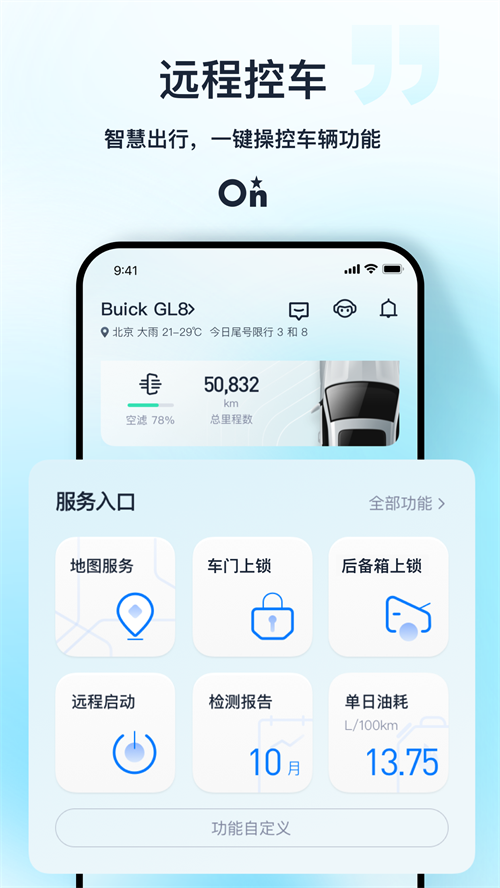 上汽通用旗下的智能车应用APP,在里面大家能去远程进行车门的解锁和开启,同时还有车辆的闪灯与鸣笛等功能带给大家,包括一键启动车辆和远程的控制等,像实时的车辆定位以及电子围栏,此类功能大家直接去点击就可解锁。