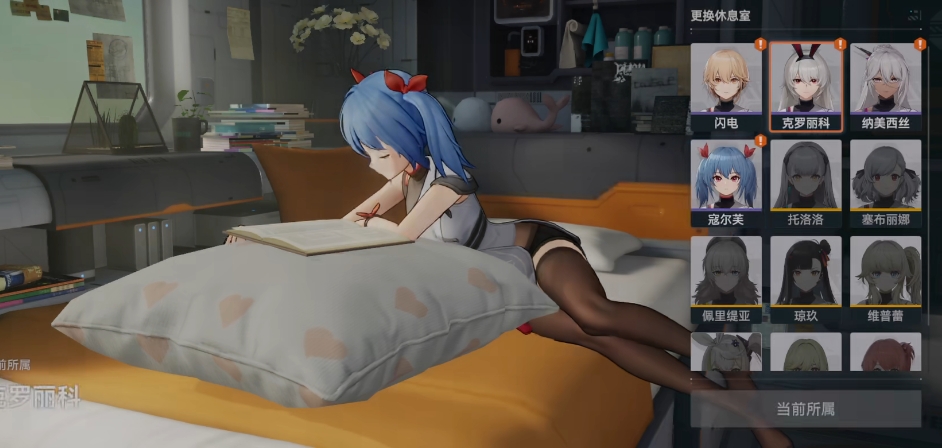 更换成自己其他的外观,在休息室中进行日长石横祸,大家在休息室的主页面就可以查看到各个角色的图标,只要点击相应角色的图标大家就可以进入其中进行查看,一个休息室队伍中最多是只可以容纳六名角色的,所以大家在上面是可以更换角色来进入休息室的哦。