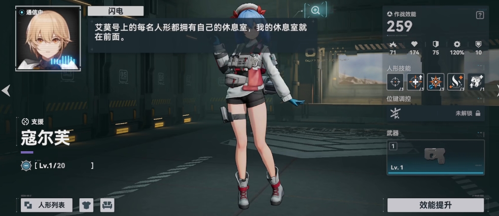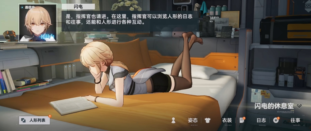 其实这里的休息室大家可以看做是一个宿舍区域,大家跟上面的教官NPC进行交流之后就可以进入休息室啦,休息室中大家是可以将自己获取的角色安排在这里休息的,一个房间中一次只能安放一个角色,回到休息室中的角色将会换下自己的战备服装。