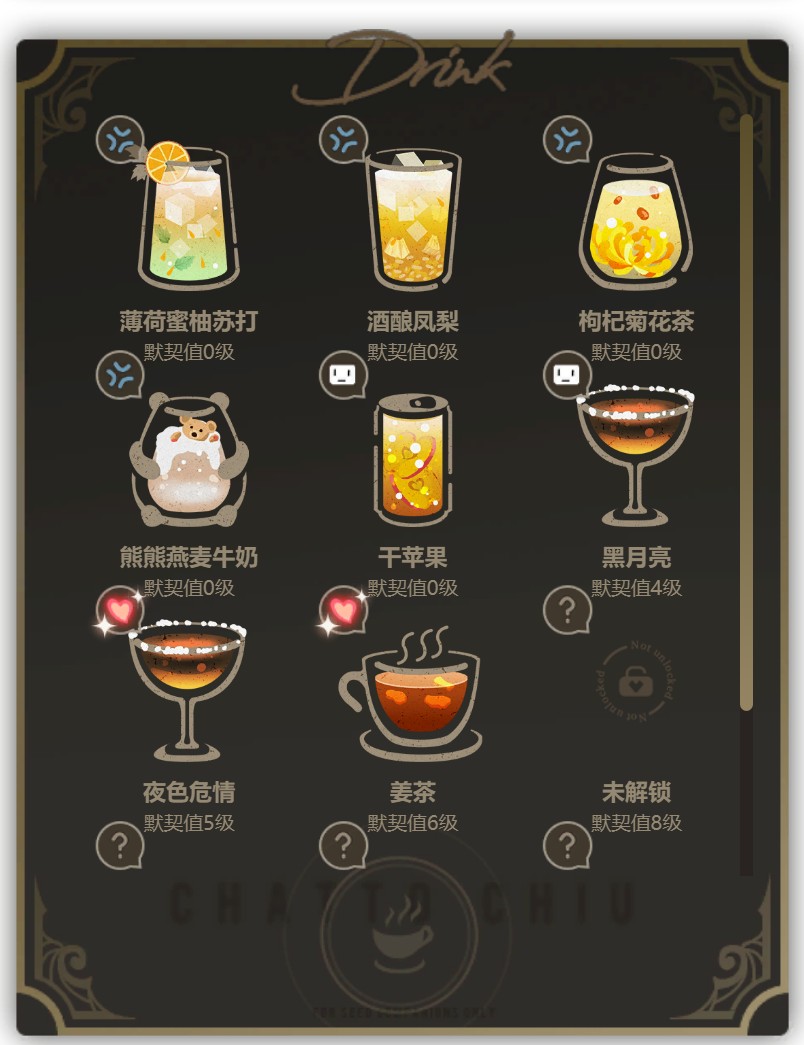 茶憩的玩法很简单,你只需要选择一个同调者,然后选择一个茶水作为基底,再添加一些装饰,就可以制作出一杯饮品。你可以根据同调者的提示或者自己的想法来进行搭配,每种饮品都有不同的效果和评价。你还可以解锁一些特殊的配方,触发一些有趣的对话和事件。每次茶憩都会消耗一定的时间和资源,所以你要合理安排你的时间和预算。