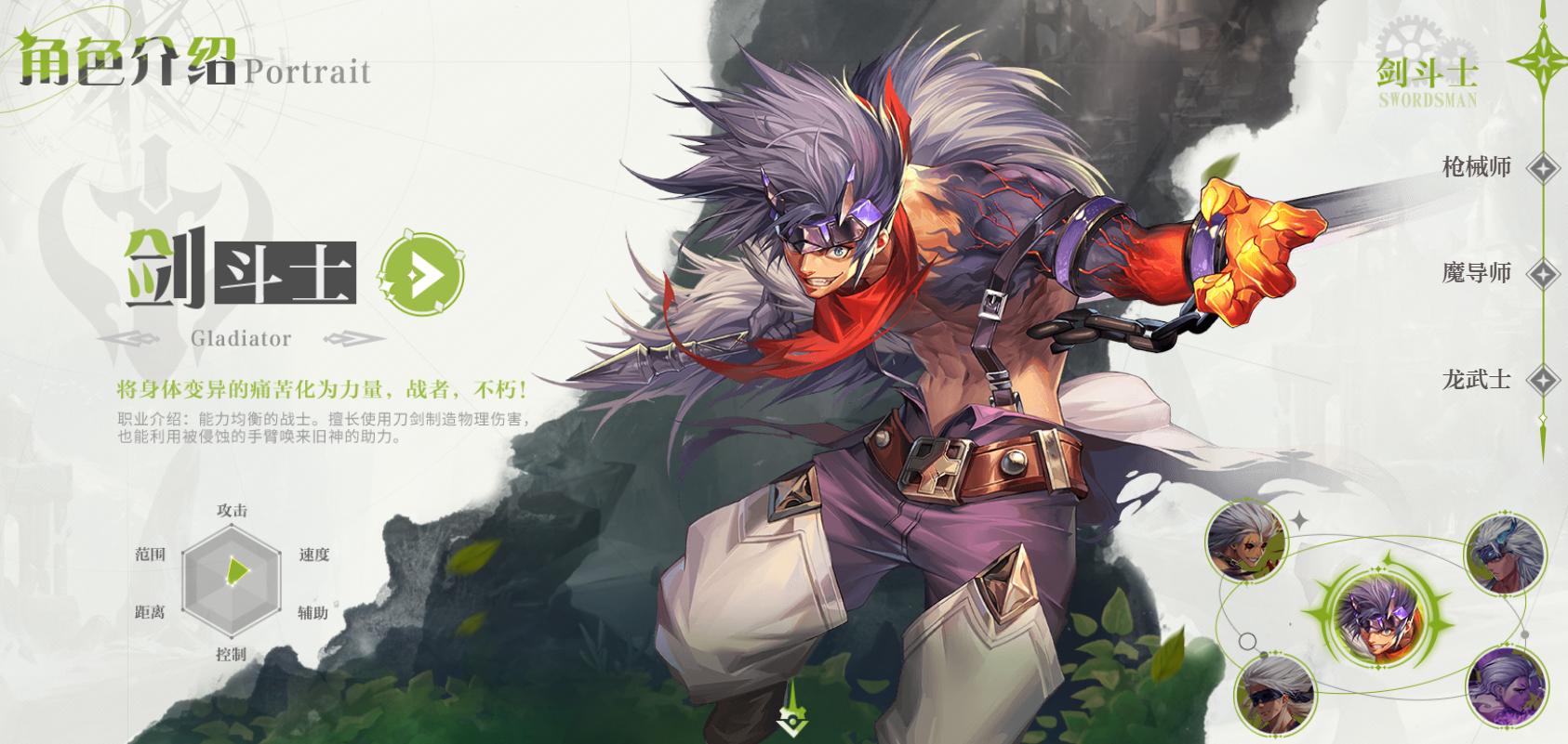 战狂:这个职业是目前剑斗士转职选择最多的,他攻击能力强,爆发力高伤害范围广,速度也是不错的,也有少量的控制技能。他的各方面能力都是均衡的,最重要的是上手难度不高,手残党的福音。想要玩输出又怕不会操作那么这个职业是你最佳的选择。