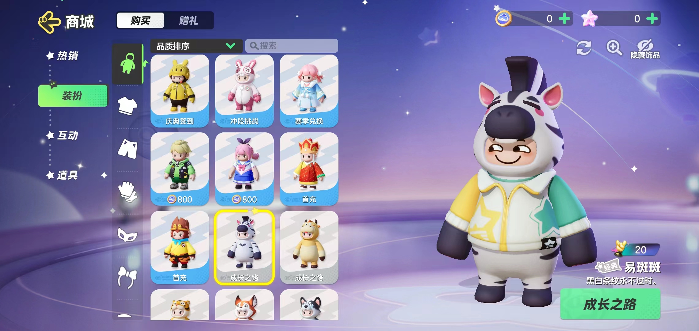 当我们达到成长要求之后再领取易斑斑装扮,你可以在游戏的装扮界面,选择易斑斑皮肤,进行穿戴,就能变身为可爱的斑马啦。
