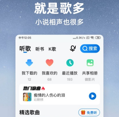 免流量听歌音乐播放器,网络神曲、火爆综艺、流行歌曲随你免费畅听。有智能推荐功能,加入独特的智能算法,成为懂你口味的音乐平台。