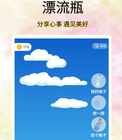 漂流瓶一直都是人们非常喜欢的交友模式,这款软件聊天不收费,回归漂流瓶的初衷。无论是捡瓶子还是扔瓶子都简单易用,在这里可遇到很多有趣的人,捡到瓶子之后,打开瓶子详细查看其中的内容。如果觉得瓶子里讲述的内容非常有趣的话,那么可与对方畅聊,如果觉得无趣与自己性格不匹配,可直接扔掉。