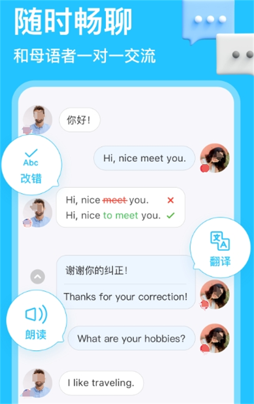 大家能在这里和自己的小伙伴一起去学习外语,更是有着直播的服务带给大家,包括全球化的移动社区以及数百种不同的语言学习等,同时也是能观看各类外语的直播。
